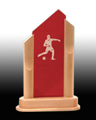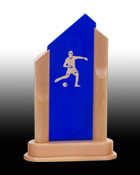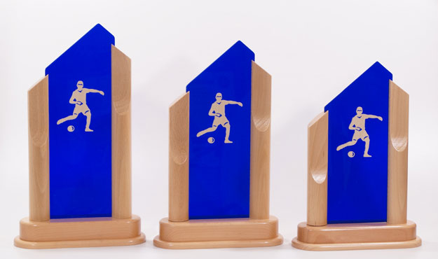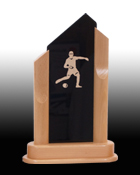ovaler Sockel natur mit 2 Säulen, Sportsymbol Fussball |
