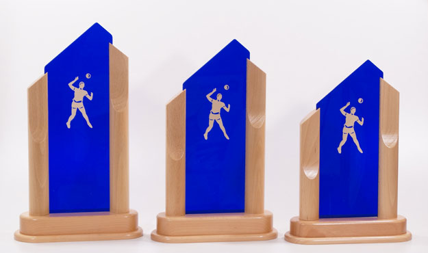ovaler Sockel natur mit 2 Säulen, Sportsymbol Volleyball |