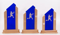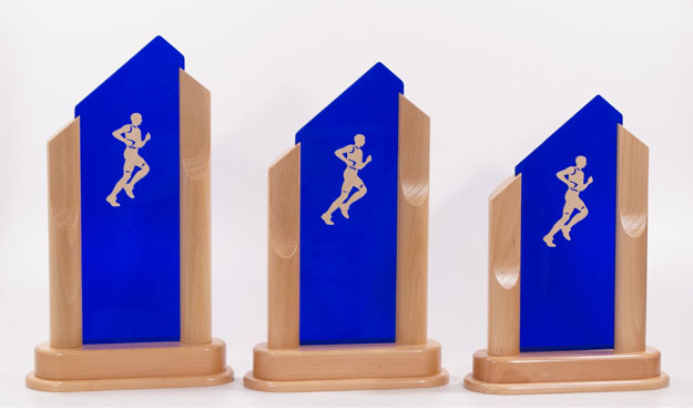ovaler Sockel natur mit 2 Säulen, Sportsymbol Lauf |