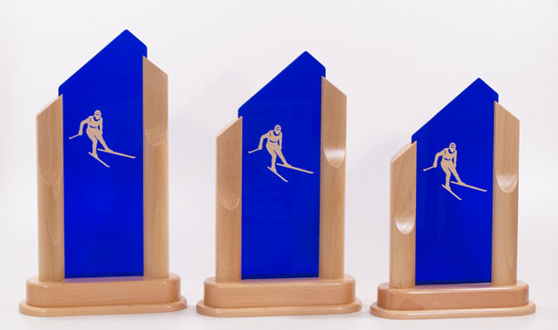 ovaler Sockel natur mit 2 Säulen, Sportsymbol Skilanglauf |