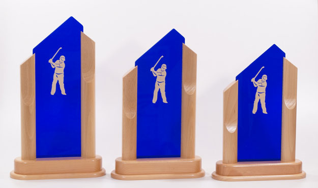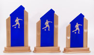 ovaler Sockel natur mit 2 Säulen, Sportsymbol Kegeln |