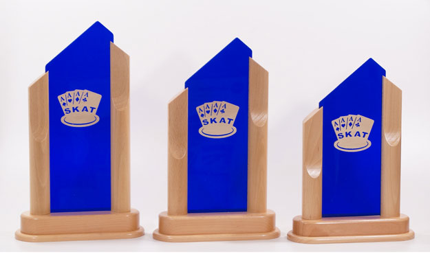 ovaler Sockel natur mit 2 Säulen, Sportsymbol Skat |