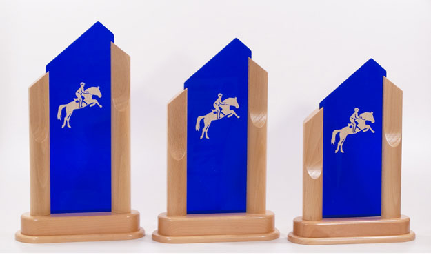 ovaler Sockel natur mit 2 Säulen, Sportsymbol Reitsport |