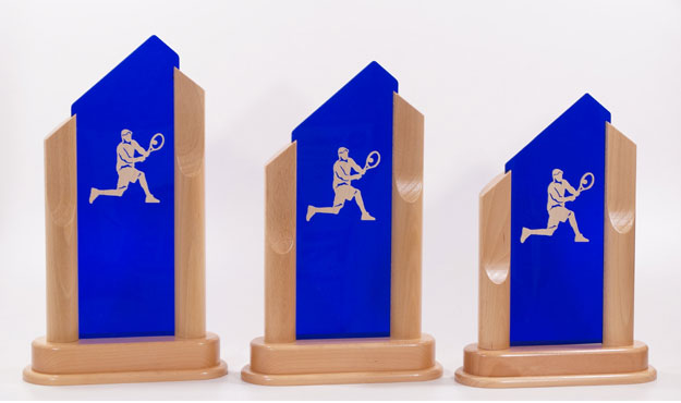 ovaler Sockel natur mit 2 Säulen, Sportsymbol Tennis |