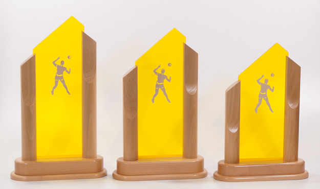 ovaler Sockel natur mit 2 Säulen, Sportsymbol Volleyball |