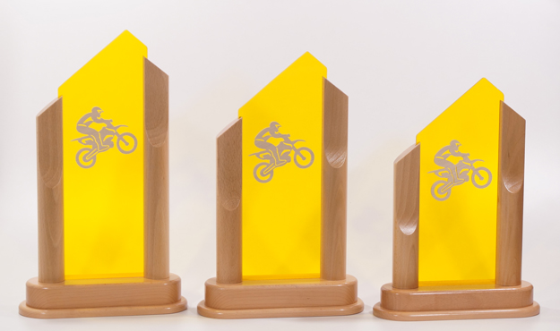 ovaler Sockel natur mit 2 Säulen, Sportsymbol Motocross |