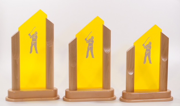 ovaler Sockel natur mit 2 Säulen, Sportsymbol Golf |