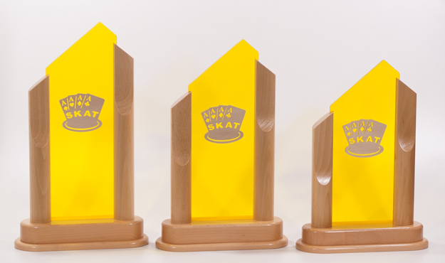 ovaler Sockel natur mit 2 Säulen, Sportsymbol Skat |