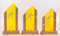 ovaler Sockel natur mit 2 Säulen, Sportsymbol Lauf |