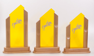 ovaler Sockel natur mit 2 Säulen, Sportsymbol Reitsport |