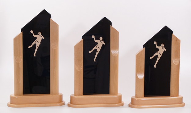 ovaler Sockel natur mit 2 Säulen, Sportsymbol Handball |