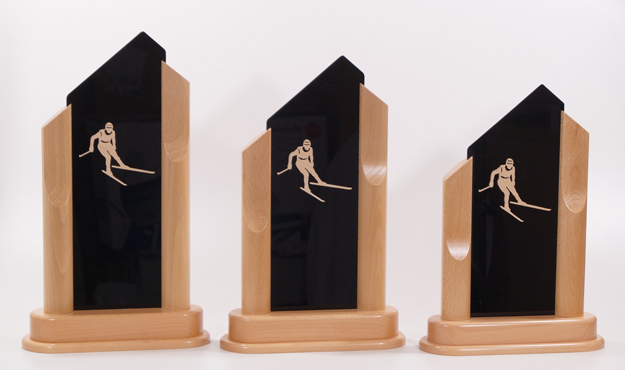 ovaler Sockel natur mit 2 Säulen, Sportsymbol Skilanglauf |