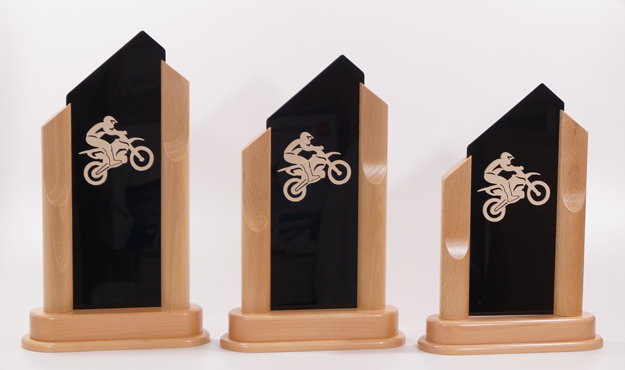 ovaler Sockel natur mit 2 Säulen, Sportsymbol Motocross |