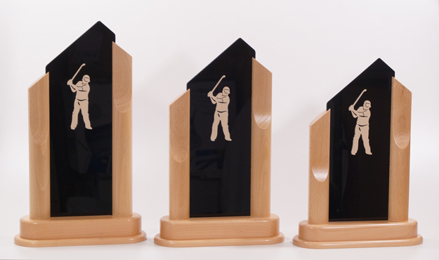 ovaler Sockel natur mit 2 Säulen, Sportsymbol Golf |