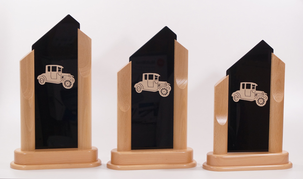ovaler Sockel natur mit 2 Säulen, Sportsymbol Oldtimer |