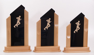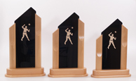 ovaler Sockel natur mit 2 Säulen, Sportsymbol Kegeln |