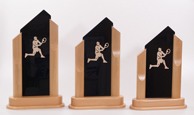 ovaler Sockel natur mit 2 Säulen, Sportsymbol Lauf |