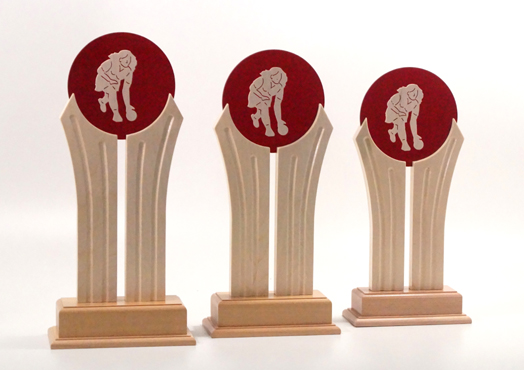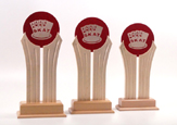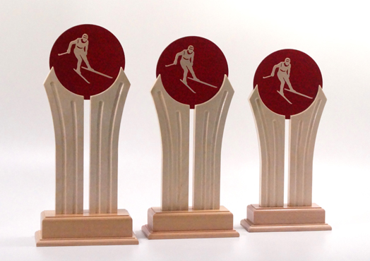 Pokale mit einem rechteckigem Sockel aus massiver Buche natur,