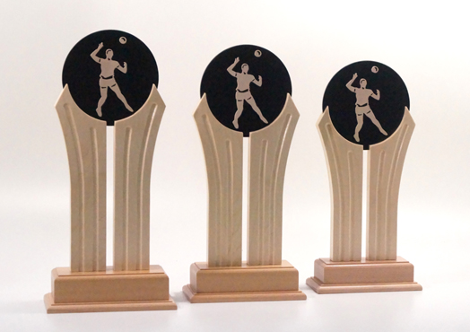Rechtecksockel natur, 2 Säulen, Acrylglas, Sportsymbol Volleyball |