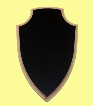 Trophäenbrett aus Weißbuche dunkel lackiert, Kanten hell, Aufhänger auf der Rückseite eingelassen,