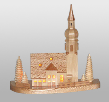 Kirche aus Buche und Weißbuche,Sockel aus Buche, natur lackiert