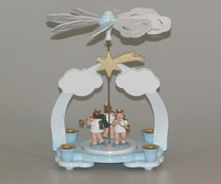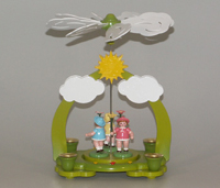 Wolken und Stern aus Weißbuche weiß und gold lackiert, Figuren farbig