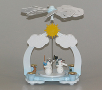 Wolken und Sonne aus Weißbuche, Weiß und gelb lackiert, Figuren farbig