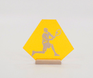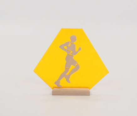 rechteckiger Sockel natur, gelbes Acrylglas, Sportsymbol Lauf |