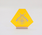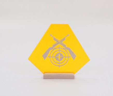 rechteckiger Sockel natur, gelbes Acrylglas, Sportsymbol Schützenverein |