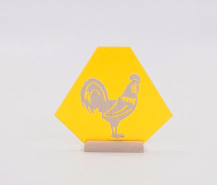 rechteckiger Sockel natur, gelbes Acrylglas, Sportsymbol Rassegeflügel |