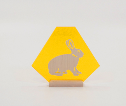 rechteckiger Sockel natur, gelbes Acrylglas, Sportsymbol Rassekaninchen |
