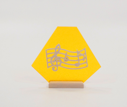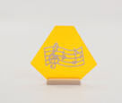 rechteckiger Sockel natur, gelbes Acrylglas, Sportsymbol Musik |
