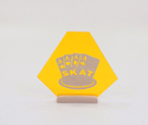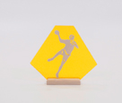rechteckiger Sockel natur, gelbes Acrylglas, Sportsymbol Feuerwehr |