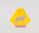 rechteckiger Sockel natur, gelbes Acrylglas, Sportsymbol Reitsport |