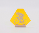 rechteckiger Sockel natur, gelbes Acrylglas, Sportsymbol Radsport |