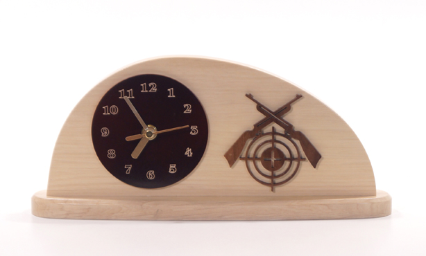ovaler Sockel natur, geschwungene Rückwand natur, Sportsymbol Sportschützen Revolver |