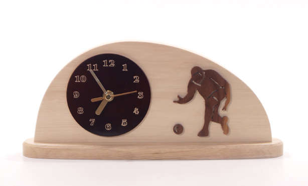 ovaler Sockel natur, geschwungene Rückwand natur, Sportsymbol Kegeln |