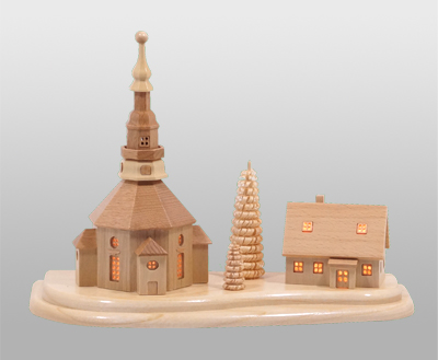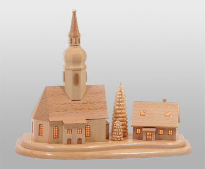 Kirche aus Buche und Weißbuche,Sockel aus Buche, natur lackiert